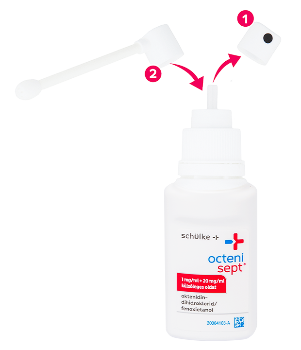 Általában naponta egyszer kell alkalmazni a kezelendő területen. Egymás után legalább két, oldattal átitatott tamponnal óvatosan törölje át a kezelendő területet, és győződjön meg arról, hogy a területet teljesen benedvesítette. Alternatív megoldásként az octenisept® nehezen elérhető nyálkahártyákra, bőrfelületekre és sebekre is alkalmazható permetezéssel, de a tamponnal való felvitelt előnyben kell részesíteni.